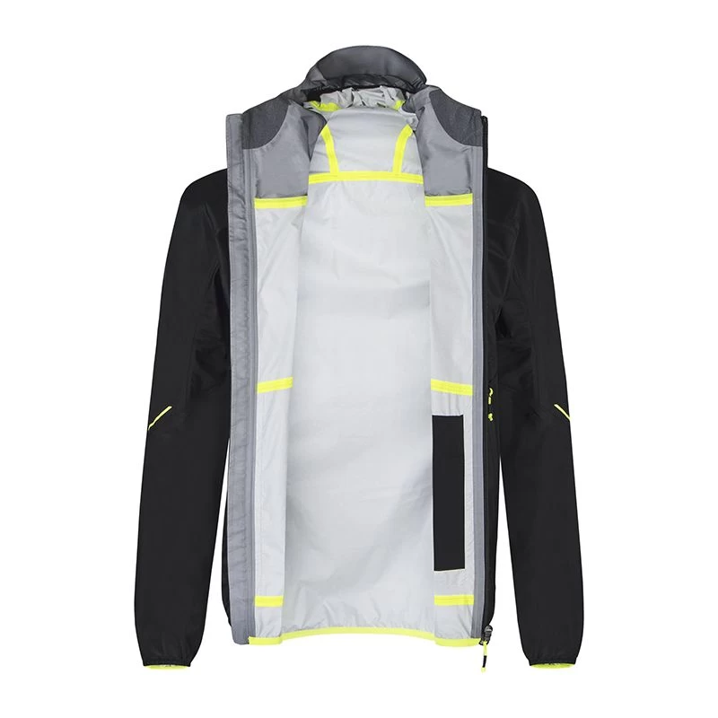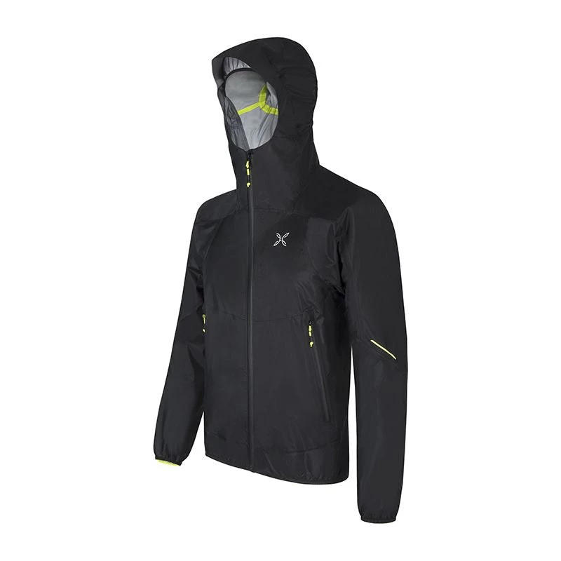 - Tessuto superlight in Nylon 2,5 strati (66 g/mq), laminato a membrana poliuretanica ultrasottile impermeabile all’aria, all’acqua (15.000 mm Water Column) e traspirante (15.000 g/sqm/24h). L’elevata densità delle fibre garantisce elevate prestazioni meccaniche e resistenza all’usura. Il trattamento idrorepellente DWR conferisce lunghe performances al prodotto, anche dopo molteplici lavaggi. ANTIUV: UPF50+