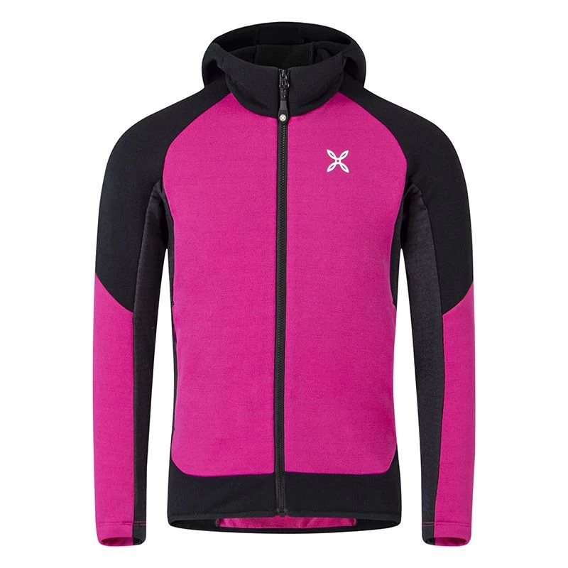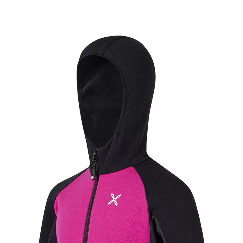 Maglia aperta kids con cappuccio in tessuto pile stretch misto poliestere e nylon Polartec Power Stretch Pro altamente traspirante
